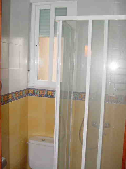 •1 baño independiente con vistas al segundo patio interior antes citado. Con plato de ducha de 70×70 cm y mampara. Además de lavabo, mueble bajolavabo y espejo