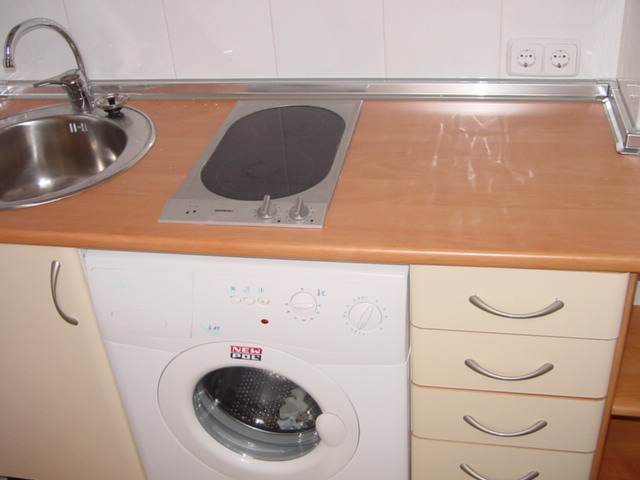 •1 Cocina independiente con vistas a un segundo patio interior también sin ruidos y aún más luminoso luminosos. Entre los electrodomésticos tiene frigorífíco combi, lavadora, cocina de 2 fuegos de inducción, campana, microondas y termo eléctrico. Además de menaje completo de vajilla, cristalería, cubiertos, sartenes, tostador y batidora