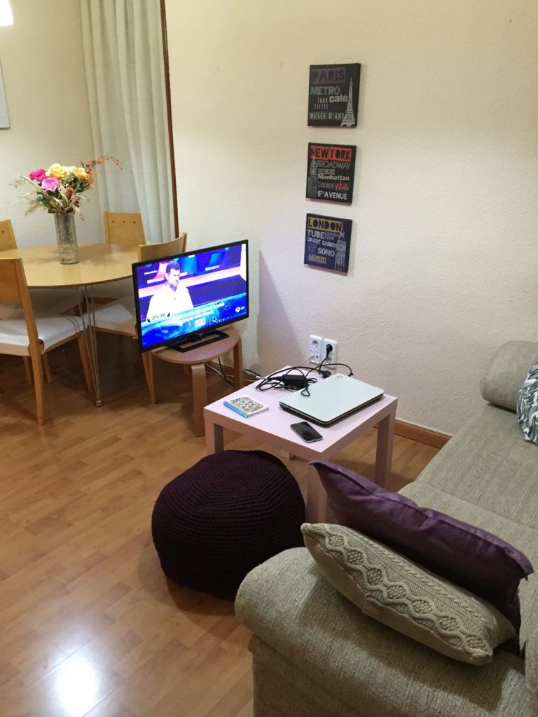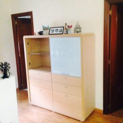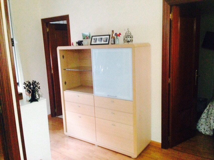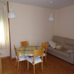 •Salón comedor con vistas a los dos patios citados. Entre el mobiliario: sofá de 190cm, mesa y cuatro sillas, aparador, mueble bajo, TV de 27”, mesa auxiliar.