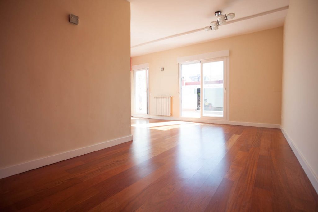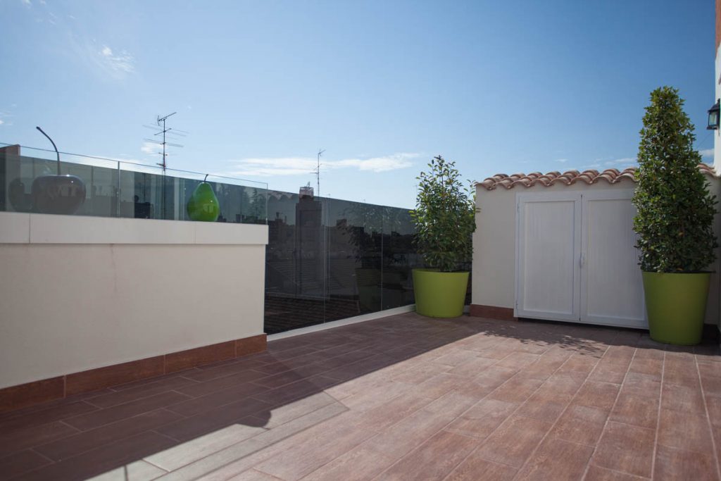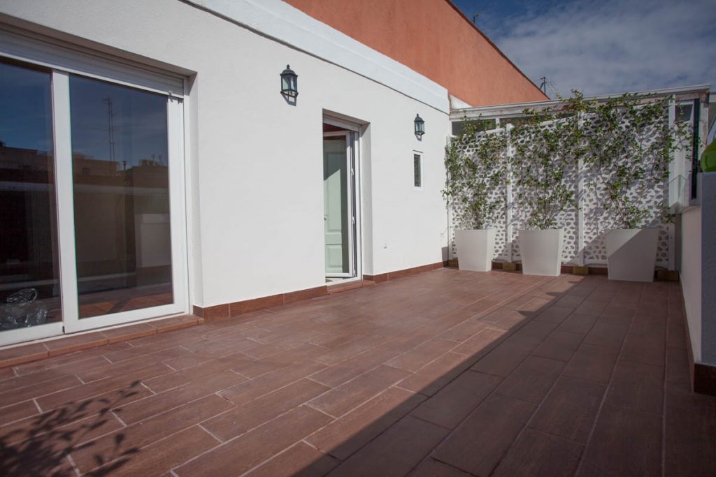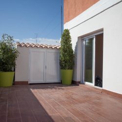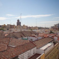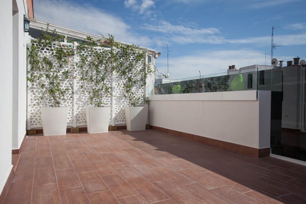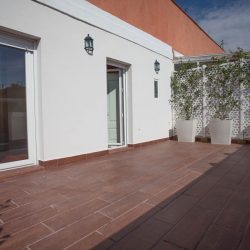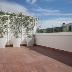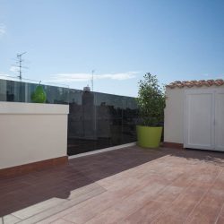 «Ático muy luminoso, 6ª planta con ascensor, 3 habitaciones, 2 baños (1 bañera y 1 ducha), 1 mini despacho, 1 trastero, un salón de 30 m2 que da a una terraza de 30 m2 de orientación sur con barandillas de cristal altas (140 cm) y toldo motorizado. En perfecto estado. Muy independiente y sin ruidos solo una pared en común con vecinos.